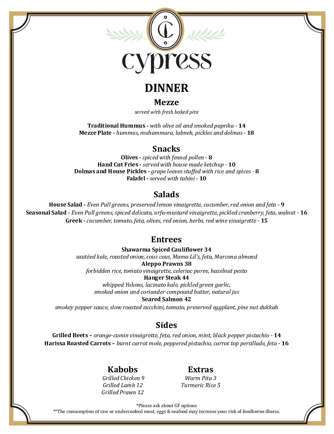 Lunch & Dinner service only